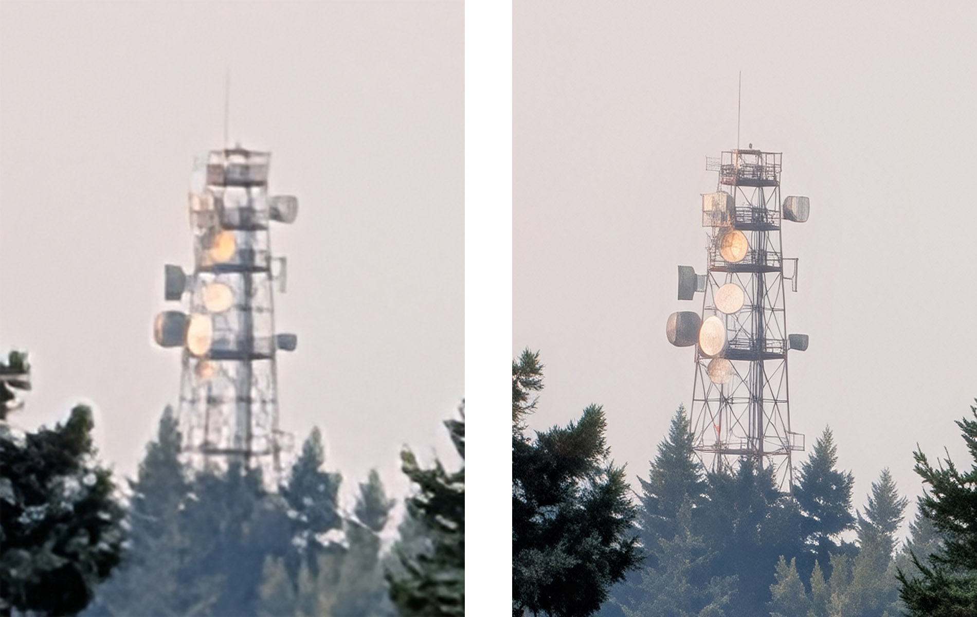 Just so we’re clear, though – Pro Res Zoom is faking it. This is AI photography, but Google has so far shown that it can really create proper images with its generative imaging. As long as you only take pics of objects and not people or words, I think the processing it does is creating stuff that absolutely looks real. The best example I have is the image below of a cell phone tower that is miles away. Google took the blurry vision I saw and then turned it into an image you’d share. And don’t just look at the tower, but make sure you look at the trees too. It’s wild.