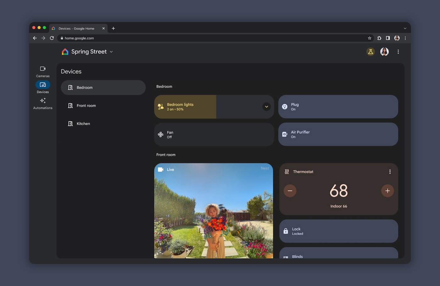 In this new Devices tab you’ll find, well, devices. You should see just about every single device you have attached to Google Home in here, with breakdowns by room. You’ll be able to click or slide or tap included buttons on them as you do in the app, and for the most part, this is a big feature improvement for the web experience. It might finally be worth bookmarking for easy access when on your computer.