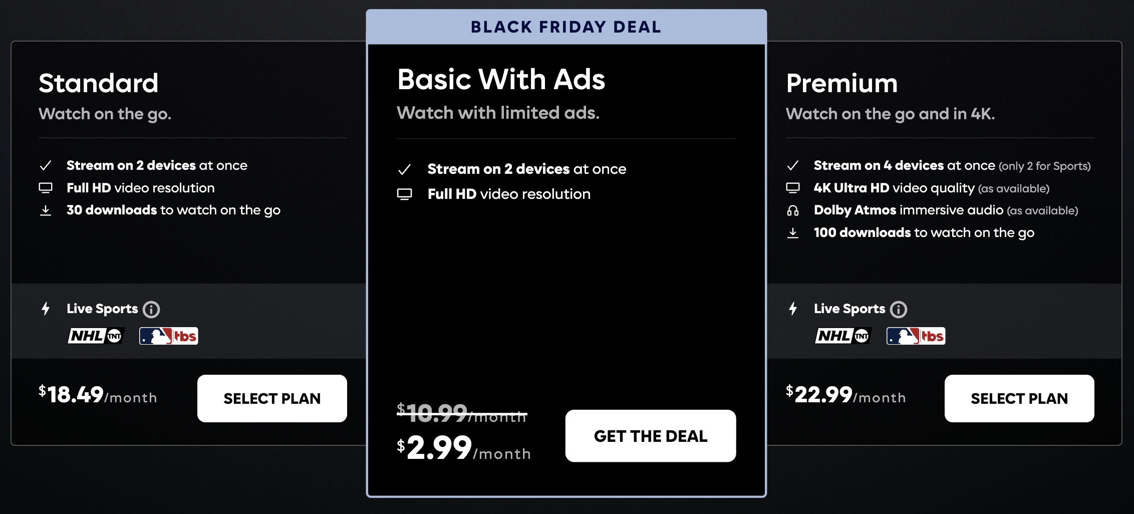 This plan typically runs $10.99/mo, so this is almost 75% off for a year. That’s one of the best deals you’ll find, assuming you can handle watching HBO Max content with some ads floating around and interrupting you at times. I mean, for that price, that’s probably just fine.